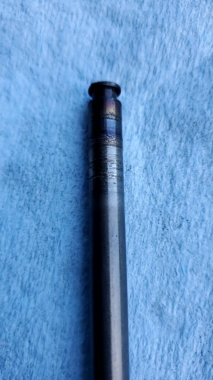 >R100GSのクラッチプッシュロッドが大変な事になってました。 >組み間違えでしょうか? クラッチを切るとヒュルヒュルと音が出たり出なかったり、レリーズアームの20.何某cmが全く検討外れの所にあったりで、ディスクの減りかと思いクラッチ板を交換する時に気がつきました。 因みにクラッチはほとんど減ってませんでした。 本日、プッシュロッドの新品が届き、比べてみたところ、この焼けているのは、溝が切ってある古い方のタイプのロッドだと思います。そして、それがクラッチ側、アーム側が反対に付いていたのではなかろうかという結論に達しました。 全く怖い話であります。 というか、よく壊れなかったなと…